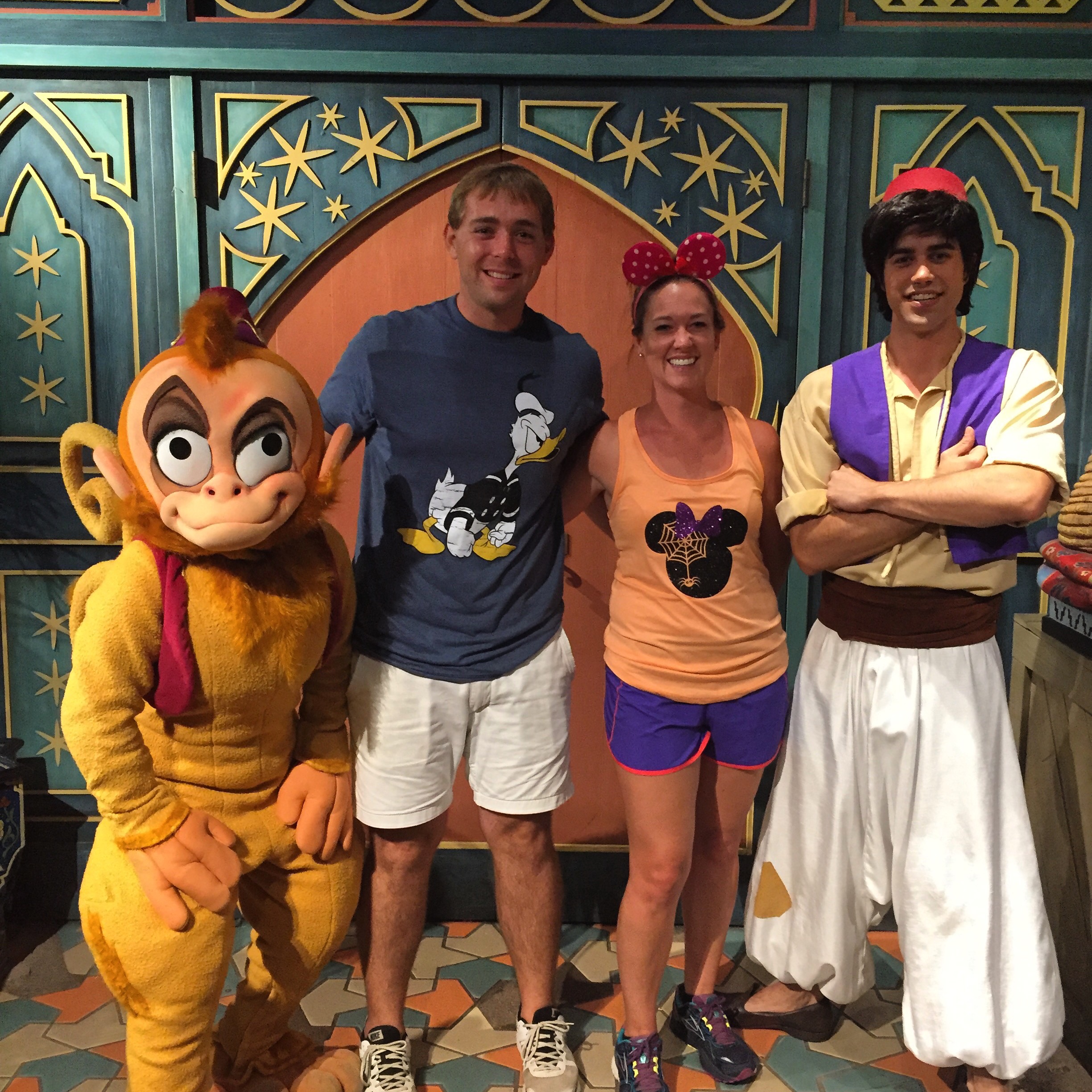 While we were riding the magic carpets I saw Aladdin and Abu! I wasn’t about to pass up a photo op! And again, the oldest people in line. No shame.