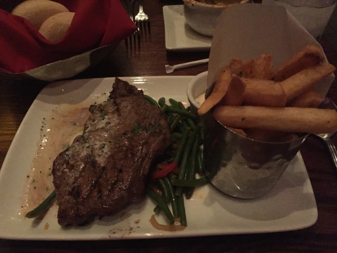I ordered the Grilled Strip Steak with Garlic-Herb Butter and Pommes Frites. Y’all, it was amazing. I was actually really sad when I ate my last bite. Even the fries were outstanding (and boyfriend kept reaching over to eat them. Unacceptable.).