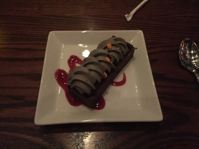 And of course I tried the Grey Stuff!!! And yes, it was delicious – and yes, I sang that part of the song ALL DAY leading up to this. Tonight’s Grey Stuff was over a chocolate brownie-like dessert. I’m not sure how to describe it – it was similar to a brownie, but didn’t have brownie consistency? Whatever it was, there wasn’t a crumb left.
