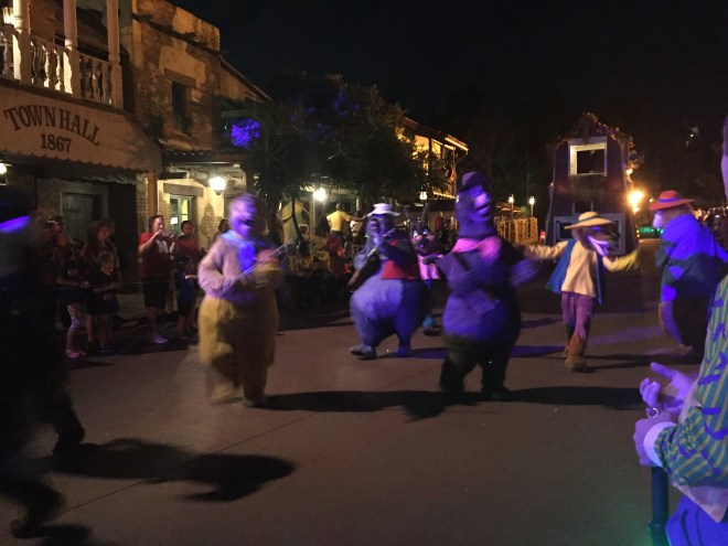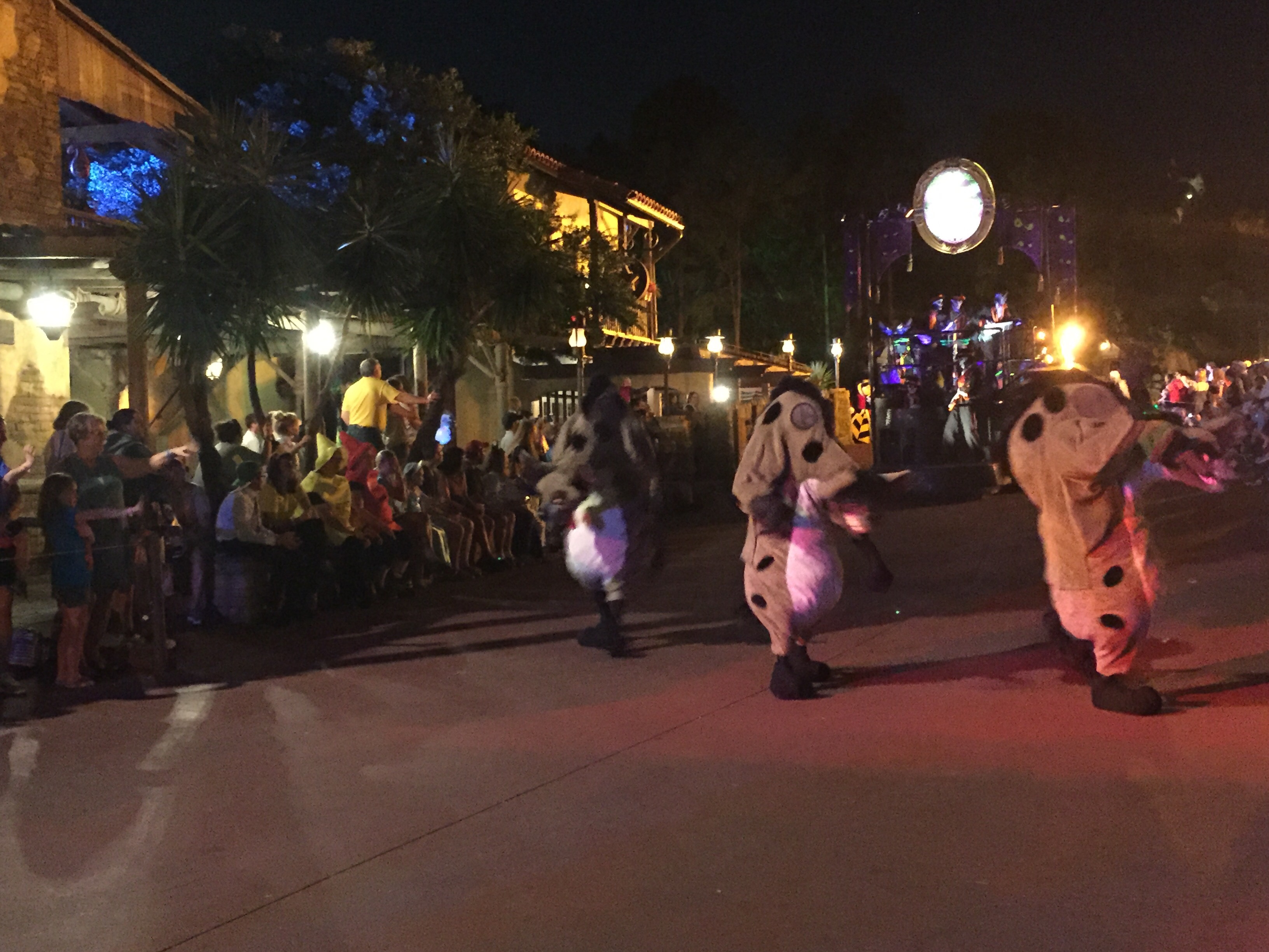 We found some prime space for the Boo-to-You Halloween Parade which usually takes place twice during the party. We opted for the later parade – everything I read said to avoid the early one because all the kids were there and left by the time the later parade happened. I loved this parade because it featured a lot of characters, especially villains, you can’t typically find around the parks (the hyenas from The Lion King, below, were hilarious), and the parade begins with the Headless Horseman riding through the streets. Warning: the song they sing throughout the parade WILL get stuck in your head forever.