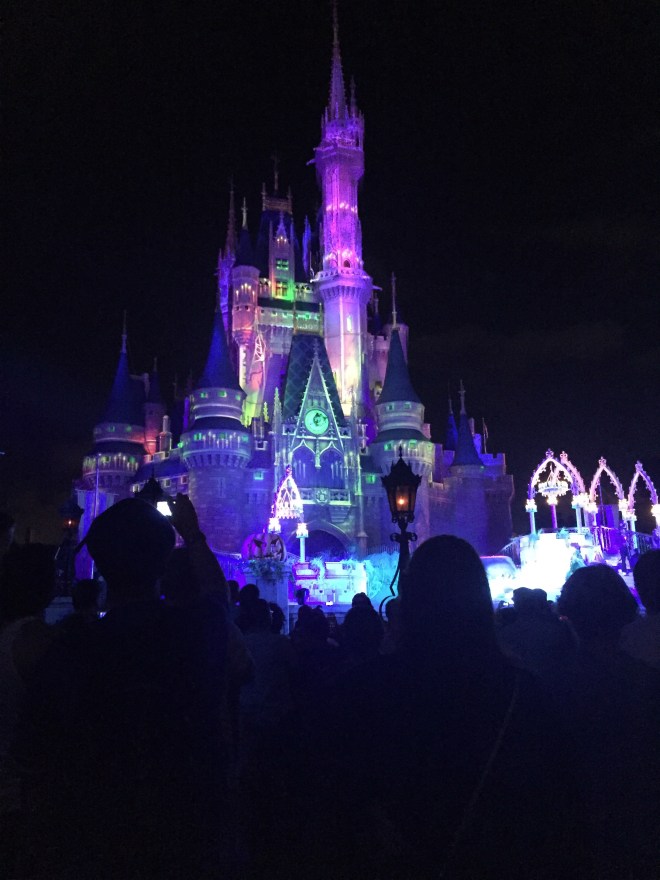 And then at midnight we had the Hocus Pocus Villain Spelltacular in front of Cinderella’s Castle featuring the Sanderson Sisters from Hocus Pocus and all their Disney villain friends! I highly recommend this show, especially if you like seeing the Disney villains!