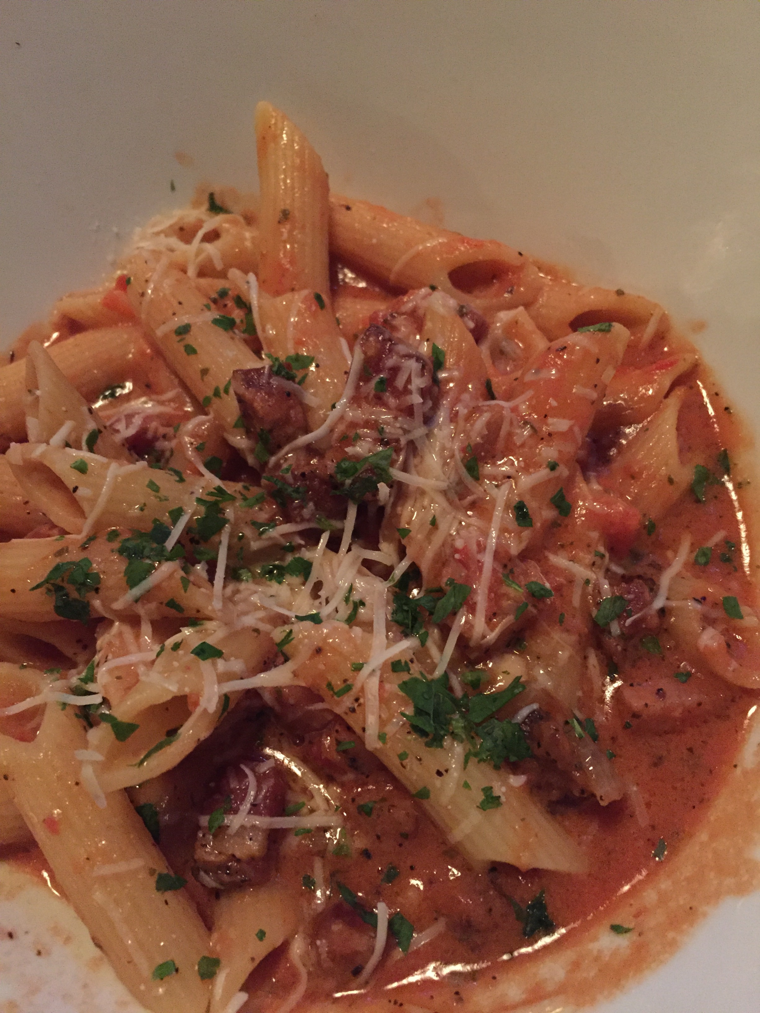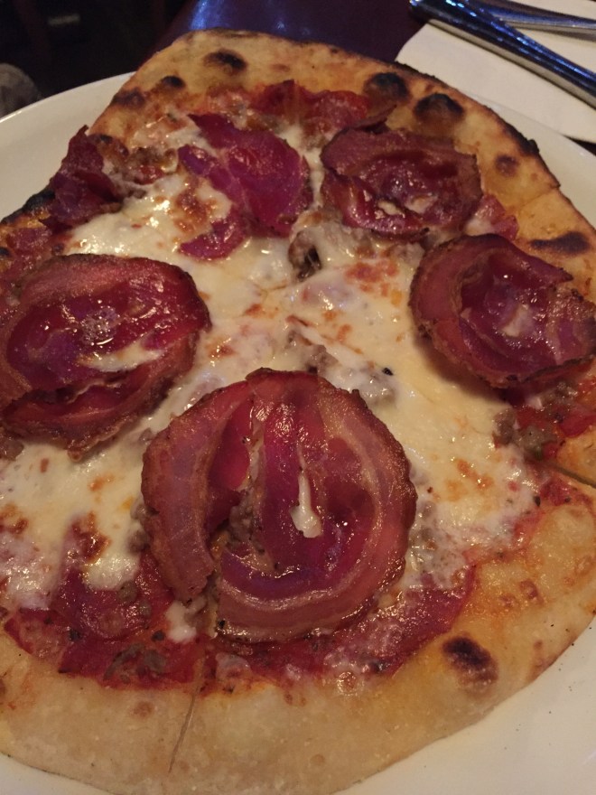 I had the Penne alla Vodka (hello little delicious pieces of pancetta!) and boyfriend had the Carne d’Italia Flatbread. I do not recommend a rollercoaster after all this food.