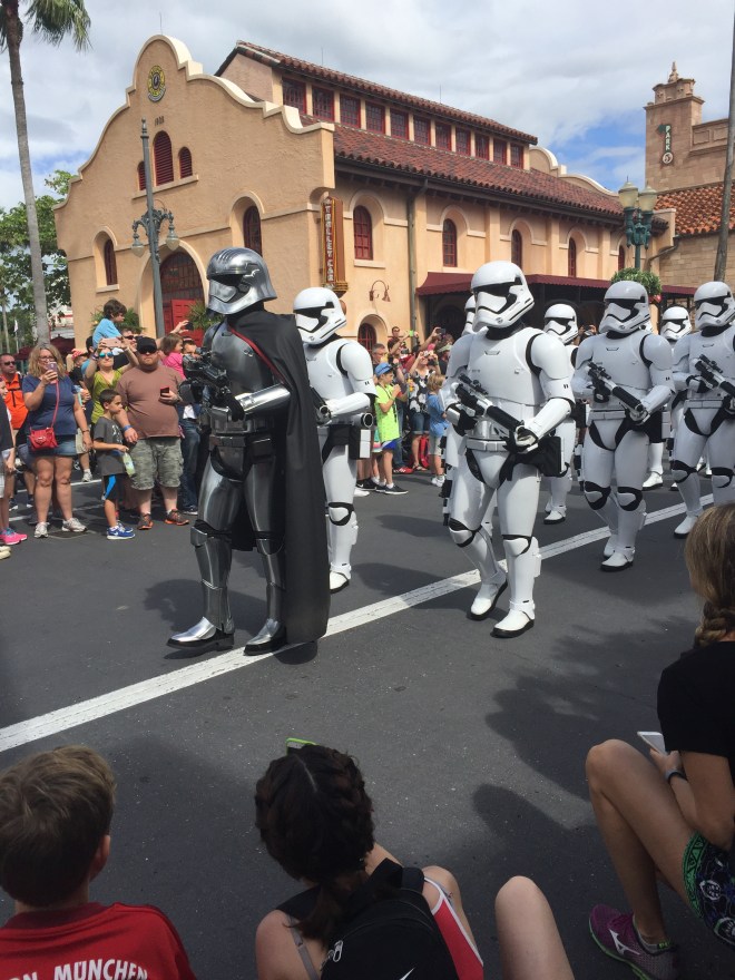 A little later we plopped down on the side of the street for the March of the First Order, which is literally just a march of Stormtroopers up the street.