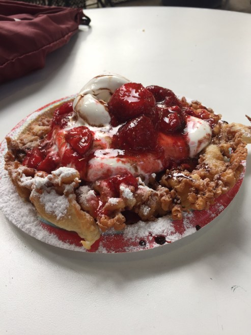 When your boyfriend tells you he “just wants a beer” and you choose a funnelcake with chocolate sauce, ice cream, and strawberries, do not believe him. He will not hesitate to eat half of your funnelcake.