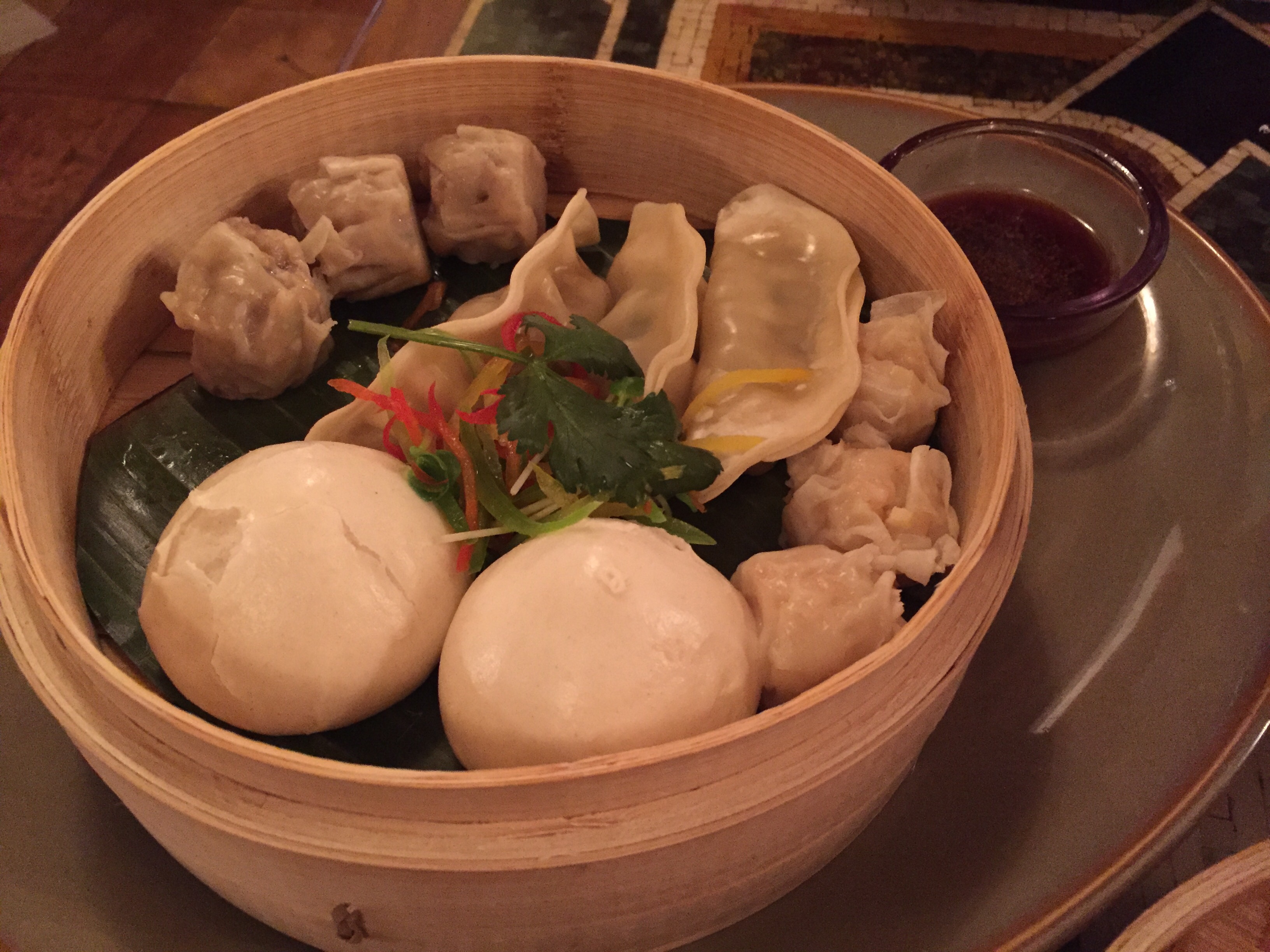 We started off with the Dim Sum Basket for Two. It contained pork pot stickers (my favorite!), shrimp sui mai, cha su bao (the two things that look like eggs), and pork sui mai. I don’t know what any of that means.