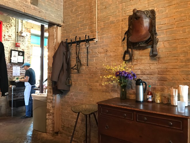 After the race we went back to the hotel to clean up and get warm and then headed to Bayou Bakery, Coffee Bar and Eatery. IT’S SO CUTE and in an old carriage house!