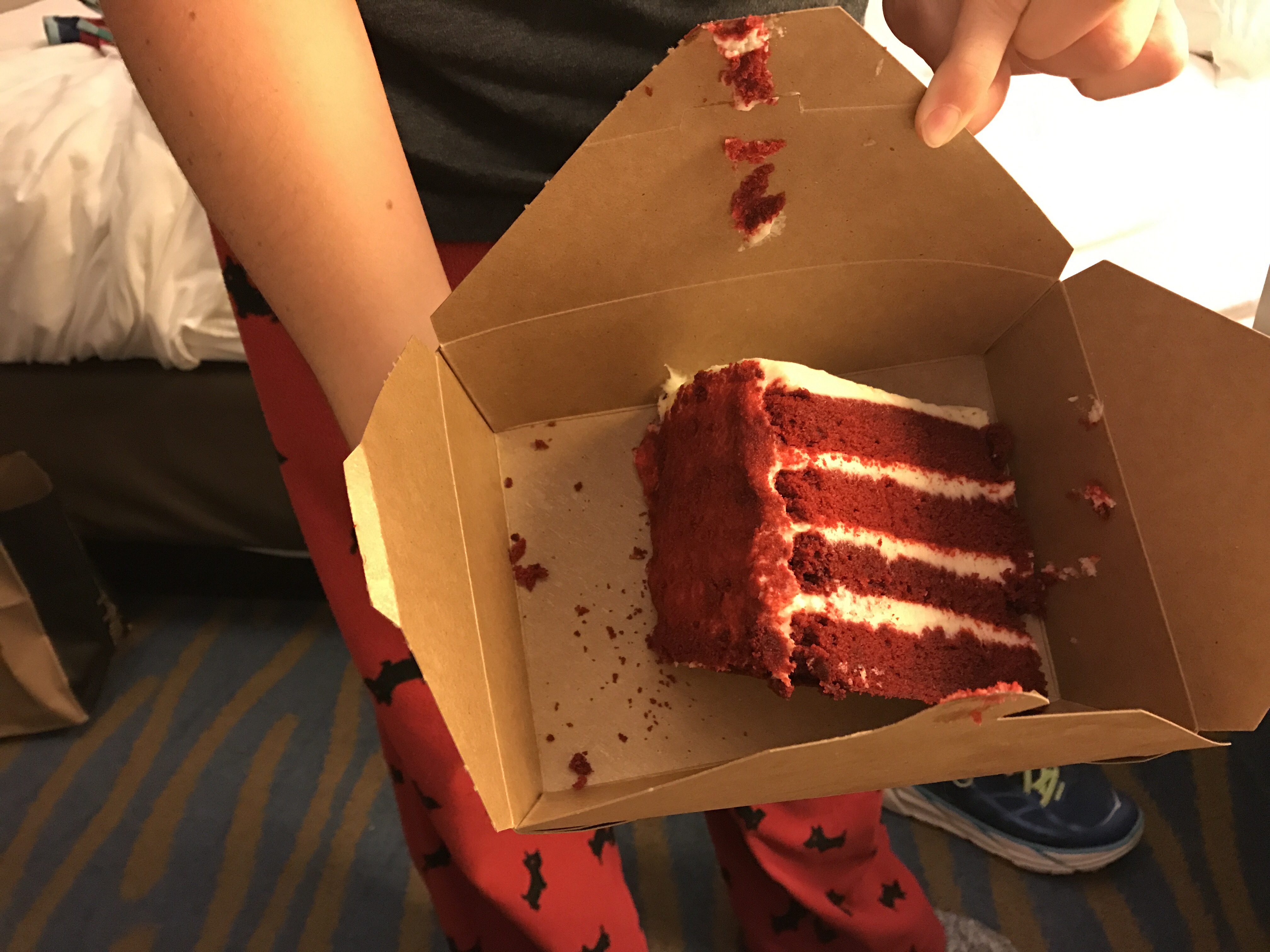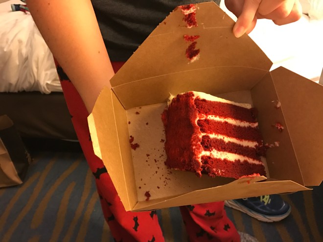 The table beside us ordered a couple desserts, but at that point we couldn’t hold anything else. But we definitely ordered a piece of red velvet cake to take back to the hotel.