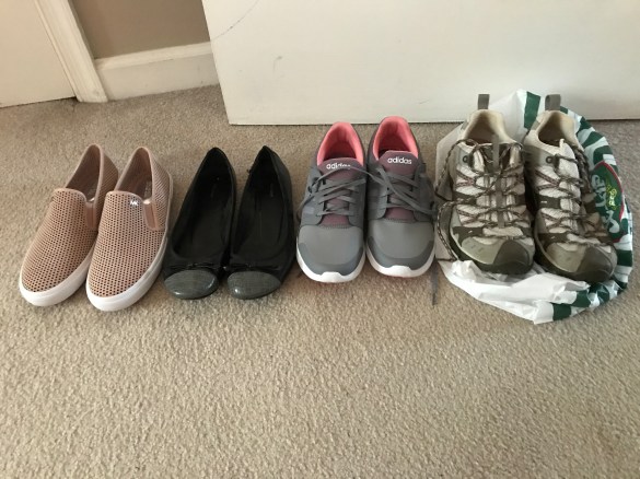 I was only planning on taking three pairs of shoes, but I couldn't leave the slip-ons behind. What if I need shoes that are less casual than sneakers but more casual than the black flats?
