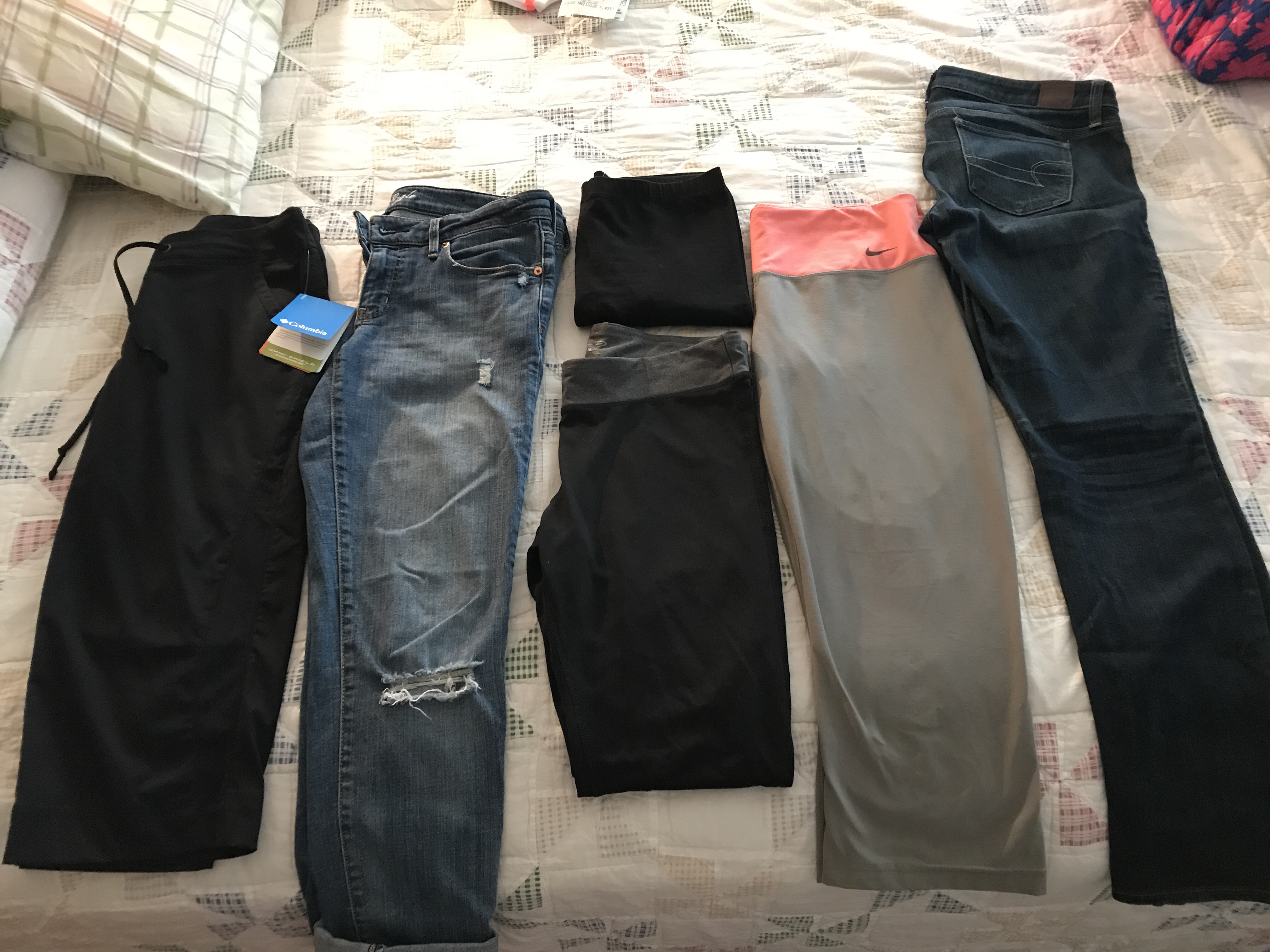 I'm sure I don't need all these pants, but I couldn't decide what to leave. I bought the left pair of Columbia hiking pants for the trip, but I'm thinking about leaving them behind since I have the long, black running tights. Those work for hiking, right?