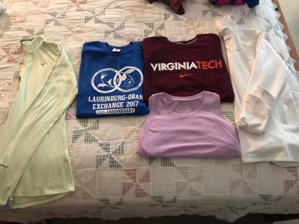 The Nike pants are my favorite because they're so comfortable. And I get so much grief from my sister, and now my fiancé, for wearing them. I think they're both just jealous. I'm sure my sister will laugh when she sees that these pants are going with me 🙂