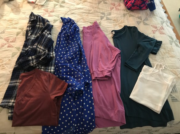 A couple different tops that can stand alone or be layered under jackets and my raincoat.