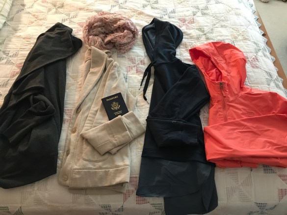From looking at the itinerary, I think we're going to be doing a lot of hiking, so I wanted some layers to keep me warm – the weather forecast is high 50s and low 60s with, you guessed it, RAIN.