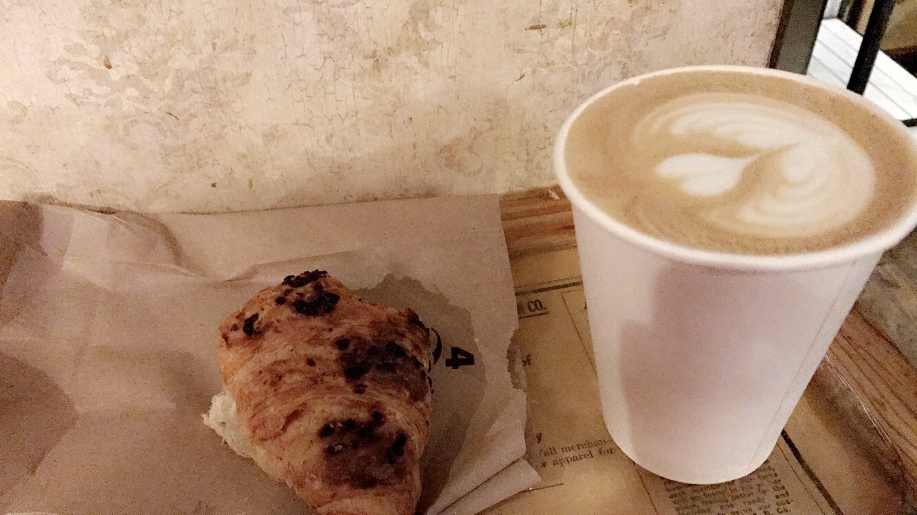 ANYWAY, back to coffee. I had read about Thinking Cup Coffee in the Back Bay area, so it was close to me. And it was packed when I got there, which is always a good sign. They had cases full of delicious pastries and cookies. I ordered the hazelnut latte because people had talked it up in reviews because of the hazelnut paste they put in. To be honest, I wasn’t very impressed. The chocolate croissant was pretty tasty, though.
