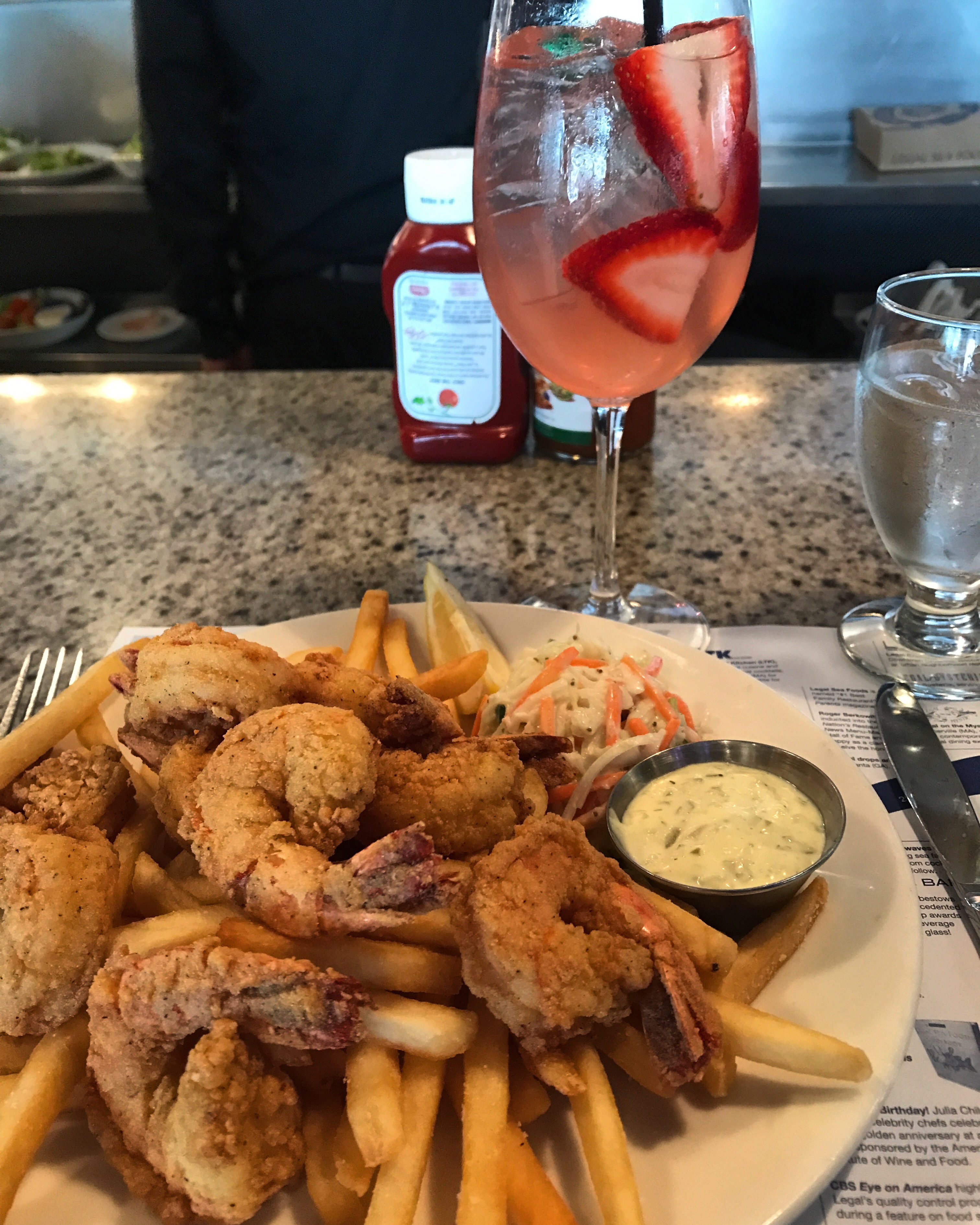 Since I had a lot of exploring to do, and at an attempt to minimize the amount of eating, I waited pretty late in the day for my second meal so it would end up being another lunch/dinner. I was craving seafood, shrimp specifically, so after looking at a ton of pictures and reviews on Foodspotting and Yelp, I decided to try Legal Seafoods – Harborside. This was strategic because it put me in a different part of Boston and within close walking distance to the Boston tea party ship.