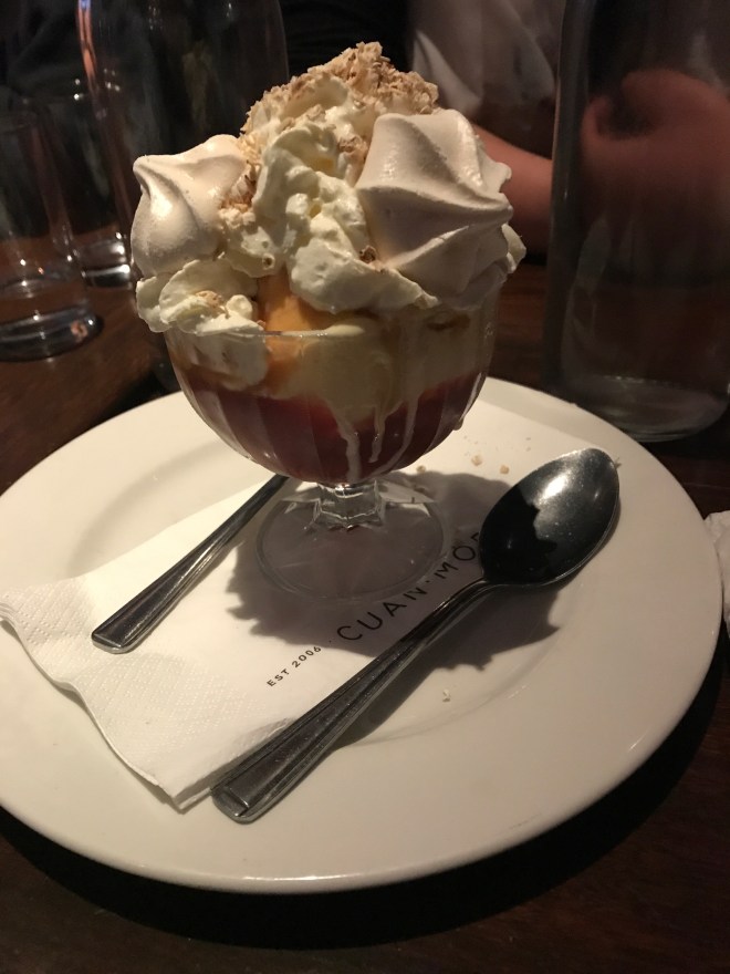 I didn't manage a pic of my meal (shocking, I know), but I definitely did get one of our delicious dessert, or pudding (which totally confused me because of what we consider pudding), a cranachan meringue ice cream sundae 😍