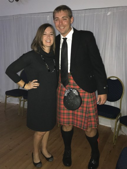 The evening event was at the same location we had the ceilidh, and I think it was technically their equivalent to what we call prom night because a lot of the girls had hair and makeup appointments. It definitely didn’t seem to be as big a deal as we make it in the States because some girls were majorly dressed up while others were in casual day dresses. Fiancé decided to embrace his Scottish heritage and wear a kilt! Yowza!