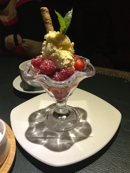 The dessert of the day’s description contained some special cream and we weren’t really familiar with it, so our hostesses insisted that we order the dessert for us all to split. The berries in Scotland were so fresh and delicious, but I wasn’t a fan of the cream on top (it wasn’t sweet enough for me!).