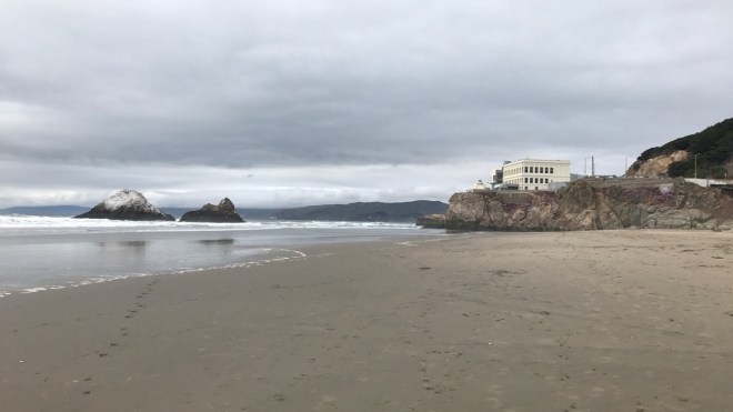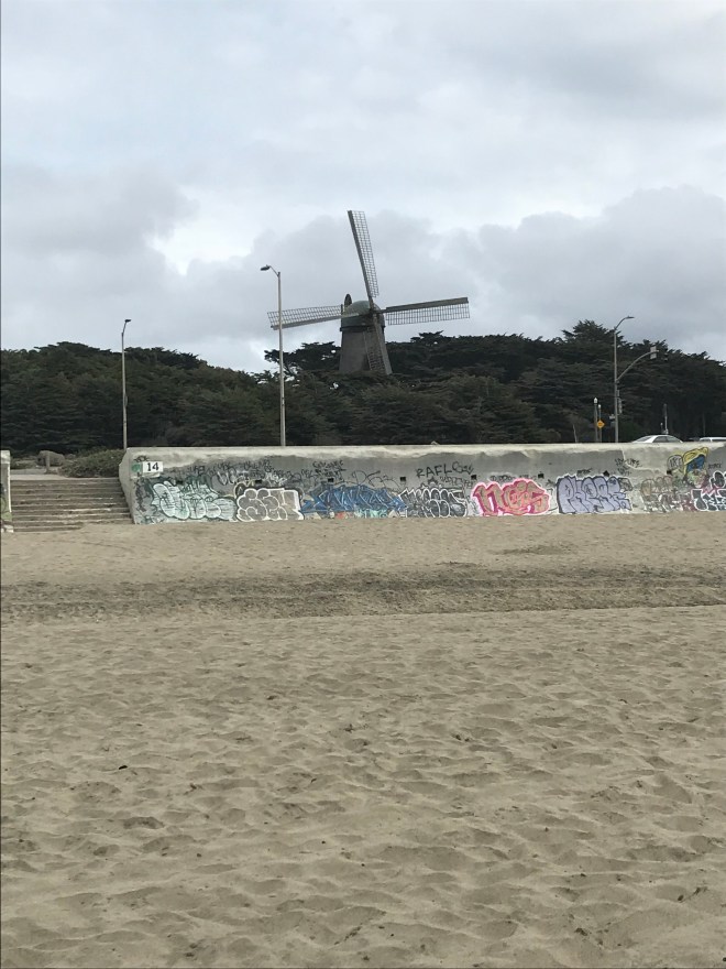 If you’re coming from Golden Gate Park, you might be surprised to turn the corner and see a pretty huge Dutch windmill. It’s even weirder to stand on the beach and see the windmill popping up over the trees across the street.