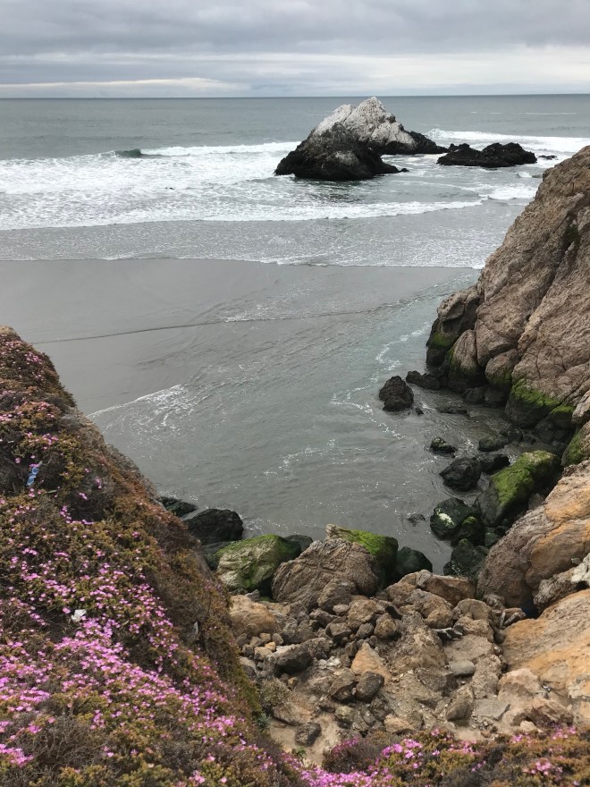 On the other side of the road is Ocean Beach – definitely not a North Carolina beach in May! Although it’s a gorgeous sight, it’s super cold and windy there, so don’t show up in your bikini and expect a tan. There were some brave souls surfing, but I stuck my toe in the water and went running in the other direction. Brrr!!!