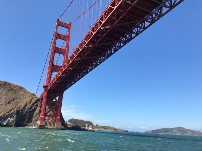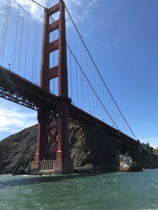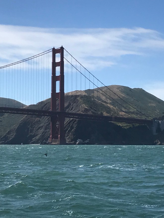 The Golden Gate bridge from the boat! Although the captain warned us that we’d probably get wet at the front of the boat, we plopped ourselves next to the netting. This pic was probably taken right before I did, in fact, get drenched by a wave 😑. Do not wear leggings if you go on this cruise. They do not dry quickly and have small holes that let wind through. You have been warned.
