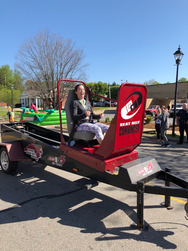 There was also a police tent and they talked us all into trying the Seatbelt Convincer…which is definitely convincing even though I’ve never needed to be convinced to wear my seatbelt. It made for some fab videos though and a bunch of young women “crashing” got more people over to their tent. You’re welcome.
