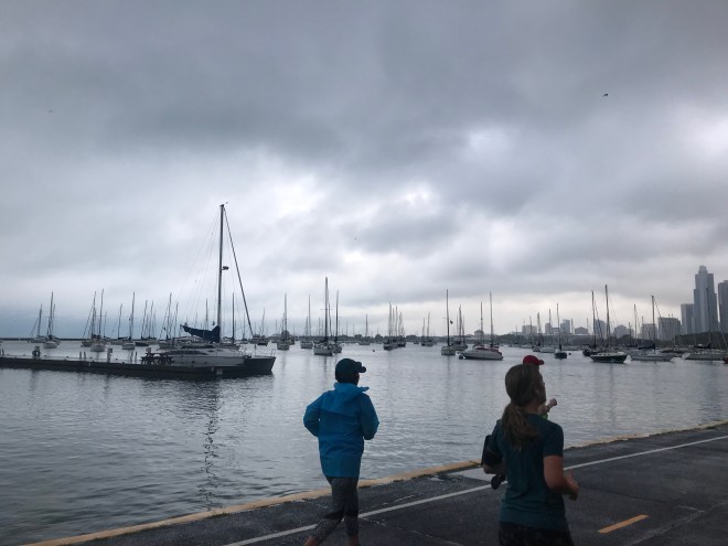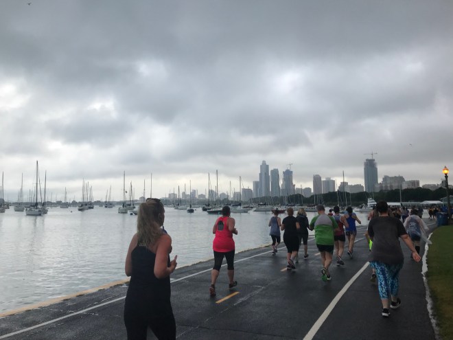 For some reason, I always forget that there’s the possibility of rain when I travel. And for the most part, the weather has cooperated pretty well in all my adventures. Not the case in Chicago…Today was race day! My sister and I talk a real big game when it comes to racing in bad weather. But just like in Washington, D.C., it was all talk. The weather kept showing rain all morning on Sunday and my sis and I kept saying that we were absolutely not running in the rain. When we woke up and checked our apps and the weather channel…not a sign of rain until noon. We were feeling good.