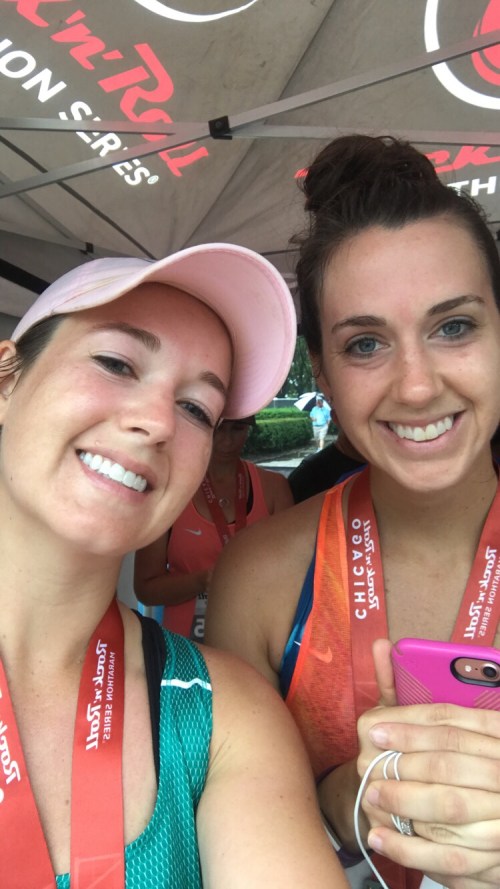 And I have to tell this story. One of our other friends gets super focused when she’s working out. At around mile 2 there was a split in the route – half marathoners went left and 10k runners went right. Yep, you guessed it. She missed it. We were standing at the finish line (under a tent because it started pouring again) wondering where she could possibly be. A woman overheard us and offered to look her up and found her…on mile 8 (a 10k is 6.2 miles). Before we located her she’d been sending texts asking where the finish line was and commenting on how lame the ending looked. We informed her that she’d missed the split and was on the half marathon course. She somehow found her way back to the finish without running the remainder of the half, and we definitely gave her a hard time over it (but we love you, N!). In her defense, the split wasn’t marked very well and if you’re an in-the-zone, head down runner, it’s super easy to miss, so make sure you’re aware of that if you plan on running Chicago.