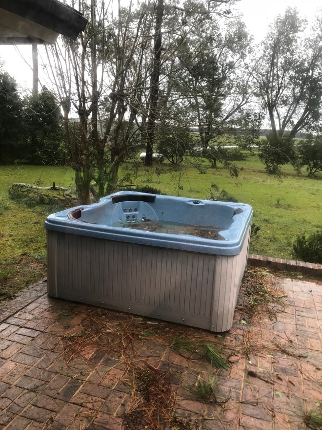 J woke up early on the Thursday before the storm was supposed to hit and emptied the hot tub. By the time the rain had finally stopped, this thing was completely full. It’s amazing that we got that much rain. Thank goodness for our little hill.