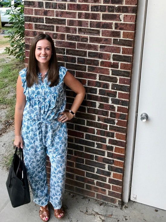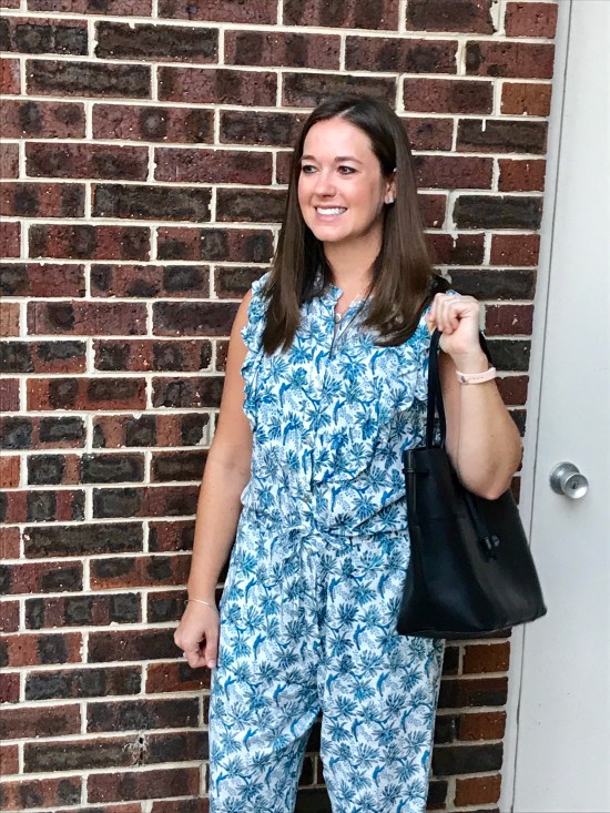 I know this post doesn’t go with the season, but it’s still in the 90s in our part of North Carolina (get it together, October!). Plus, this Banjanan Blue Dandelion Rose Jumpsuit was one of my favorite outfits from Rent the Runway! The main reason it’s one of my favorites is because it basically felt like I was wearing pajamas all day. Who can complain about that?