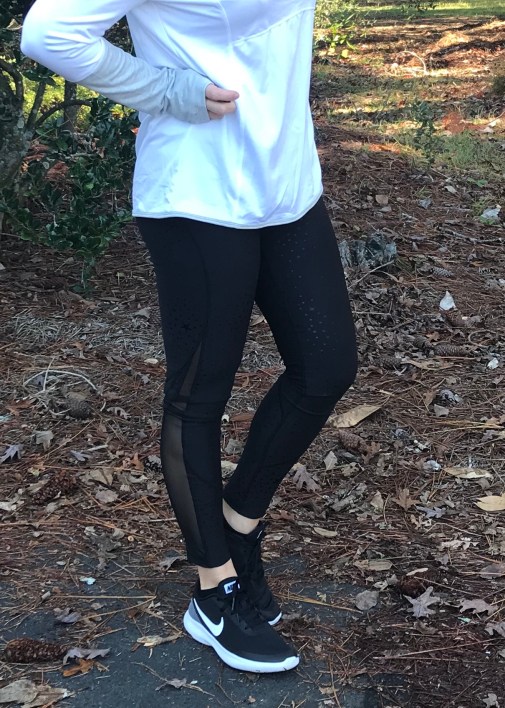 It’s difficult to see in some of the pictures, but what makes these Avia leggings (that are only $15!!!) so cute is the fun little star pattern. In addition to the peekaboo sheer that goes up the sides, the star pattern gives the leggings a fun little feminine touch.