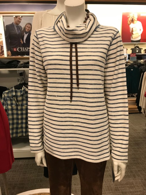 I’m thinking about going back for this cowlneck top to wear with leggings. It looks put together, but it also promises comfort. I’m all for a loose fit on Thanksgiving because I don’t want to be thinking about holding my stomach in all day!