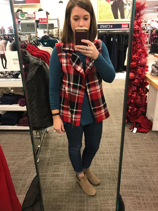 Again, if you have to wear real pants, a cute vest is casual but cute! Just don’t wear this vest with a blue shirt like I had to do in the picture above 🙂