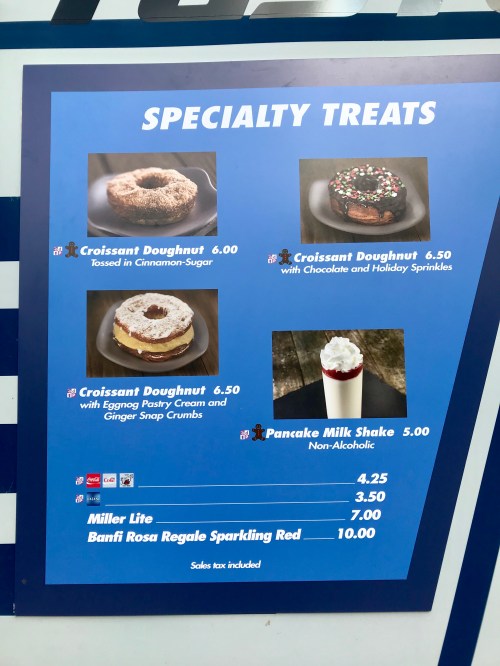 We fit in a lot of rides first thing in the morning while the lines were short. I skipped breakfast in anticipation of all the food, but the two things that were calling to me were closed (see pic of croissant doughnuts below – and yes, I was totally going to get that pancake milkshake, too) or completely out (boo, refreshment port and your lack of stuffed salted caramel pretzels!).