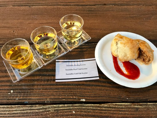 I don’t know why I couldn’t fill up, but I was so hungry all day long. My final request for a snack was at the Canadian kiosk. I really wanted the icewine flight (if you’ve never had icewine and you like sweet wine, you MUST get some!), but I also wanted some food with it and even though I wasn’t sure what the French Canadian Tourtiere (basically a pastry full of meat), I decided to be brave and give it a try. Another good decision!