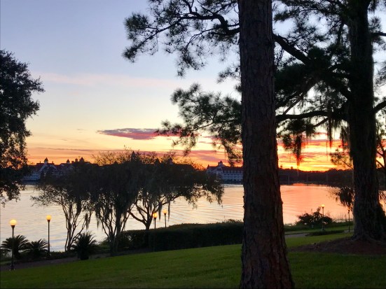 After a ride on Space Mountain, it was time to head out. The park was closing at 6 for the Mickey’s Very Merry Christmas Party; that’s an additional cost that we didn’t really want to pay, so we decided the rest of the day would be spent riding the monorail to the different hotels. There was an absolutely beautiful sunset over the lake and the Grand Floridian as we headed to the monorail.