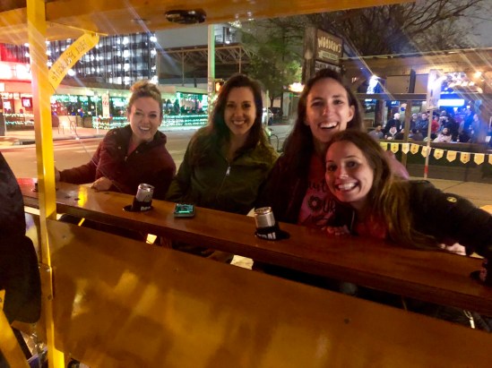 And even though all of us had been up since 3 or 4, our next stop was downtown to find some food and then board our Pubcrawler! We needed something fast, so we all just opted to go in the Whole Foods (which is the flagship store, so that’s kind of cool to say you’ve been in). And then it was time to pedal!