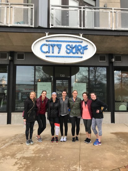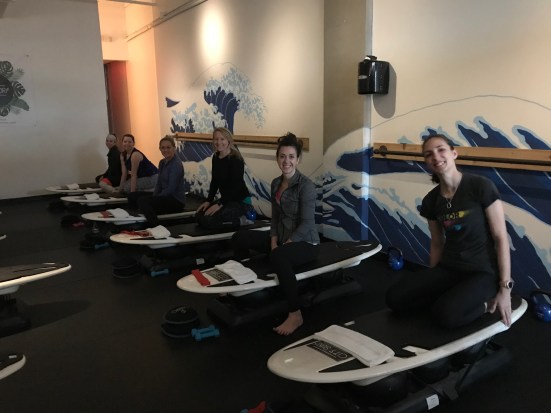 We booked spots at a place called City Surf Fitness. Most of the workout takes place on a surfboard atop three balls. The board moves, so in addition to a tough workout, you’re also struggling to maintain balance. It was awesome!