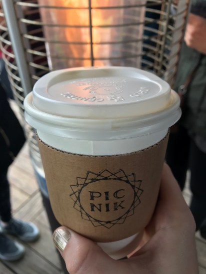 We moved over to a food truck/trailer called Picnik as we waited and got butter coffee (yes, you read that correctly) and huddled up to the heaters. I got a vanilla latte that was super delicious.