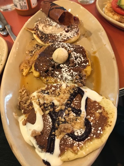 But now, pancakes! Snooze offers a pancake flight which is great because I hate making decisions! From top to bottom, sweet cannoli cake, sweet potato, and blueberry danish. So good, y’all!