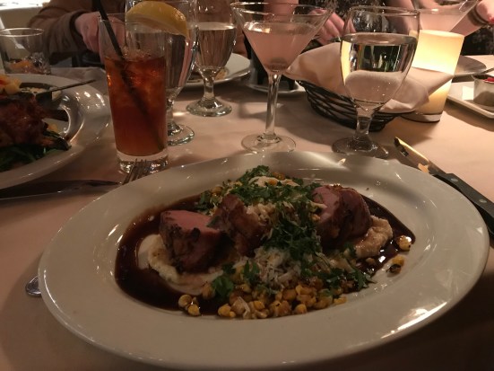 I made reservations at Roaring Fork for our going out night. The restaurant felt super Texas-y with antler chandeliers, brick, and a warm, roaring fire. Our waiter was super nice and even brought my sister a dessert of her choice since it was her celebration weekend!