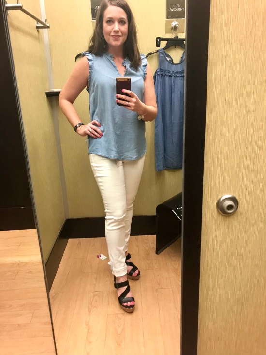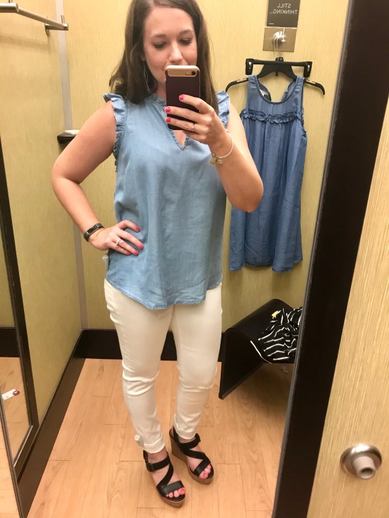 I was determined to try on a few things and laughed when I was in the dressing room because I ended up with chambray everything! A girl likes what a girl likes!