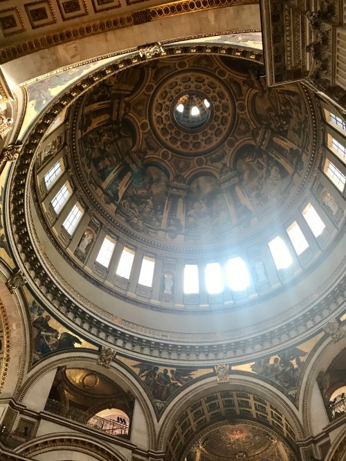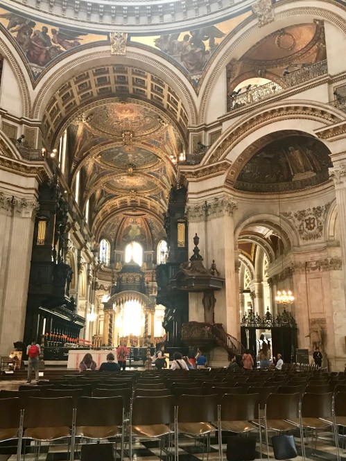 We got up early to make sure we got to St. Paul’s Cathedral before the major rush of tourists. And finally we did the right thing! We arrived not long after it opened – tickets to St. Paul’s includes an audio guide (which is lovely), entry to the cathedral floor, crypt, and the three gallery domes (lots of steps, including winding ones, so be prepared for that). The Whispering Gallery is currently closed, and according to their website, it likely will be through December of 2019.