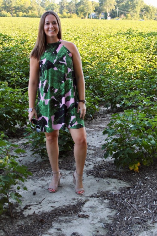 I, again, sized up to a large because I thought it might be tight in the bust, and was happy with that decision. This dress might be a little short on taller women, so keep that in mind. It comes in 23 other colors (including a really pretty solid burgundy and a black that are a bit dressier). Pink and green is one of my favorite color combos, so that was a big selling point for me.