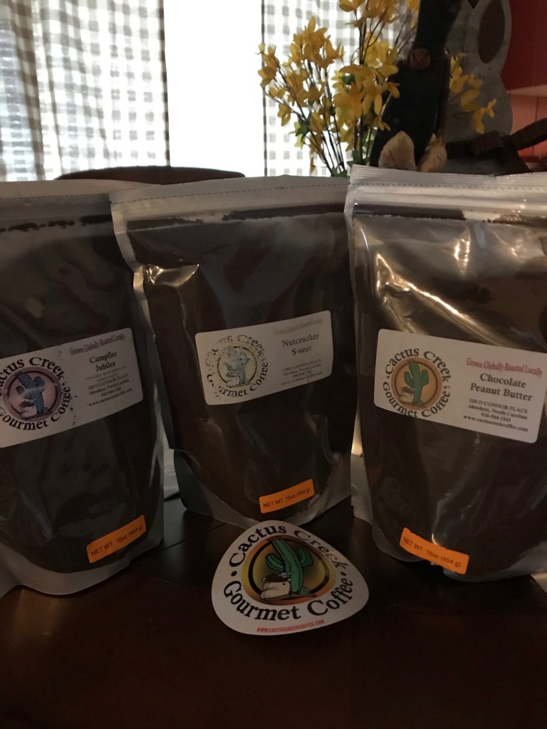 Cactus Creek is a local (to me), veteran-owned coffee shop that I discovered earlier this year. The coffee is amazing, and it comes in 55 flavors in addition to the more traditional roasts (and the flavors come in decaf, which made my mom so excited!). We were big fans of Fireside Delight and Pecan Sticky Bun!