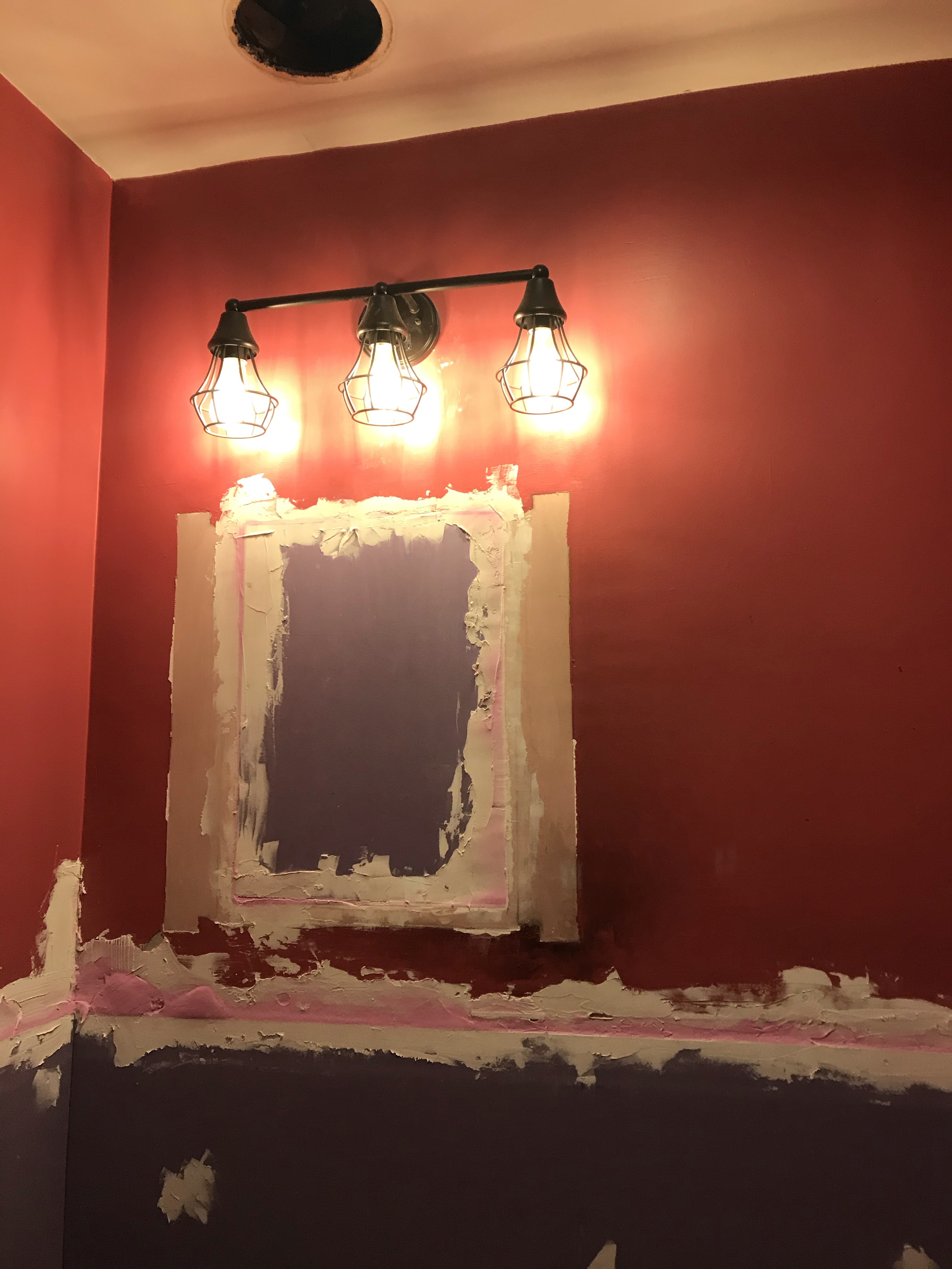 Lights were in next! I bought these bronze vanity lights from Lowe’s and really love them. We didn’t want to deal with rewiring, so they’re a bit off-center with the vanity which bothers me a bit, but I’m probably the only one nit-picking…