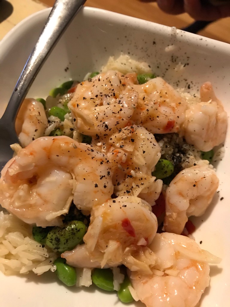 The first night we made the Sweet Chili Coconut Shrimp – this was an “easy prep” meal, which means it arrives with pre-chopped ingredients and an oven-ready pan for cooking. Everything was really simple to put together, but I did have to spend a lot of time rinsing off the frozen shrimp and peeling off some of the shells that hadn’t been completely removed.