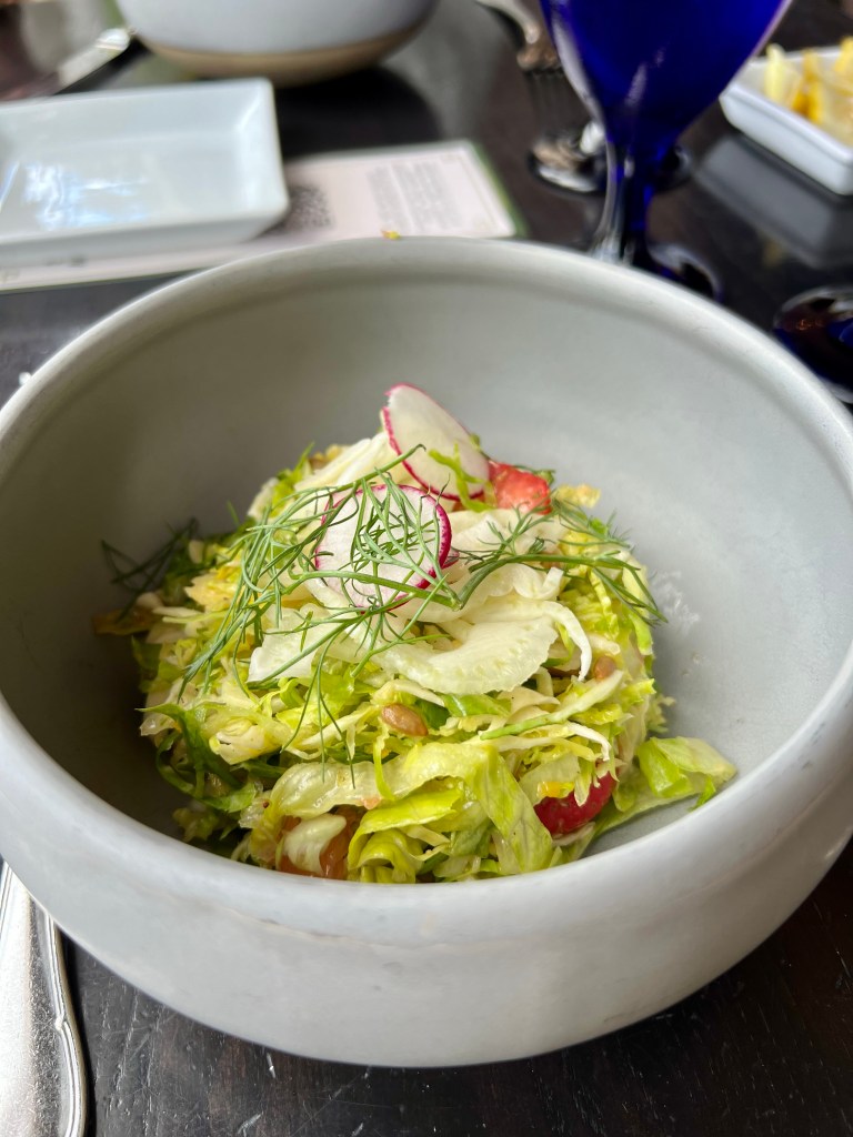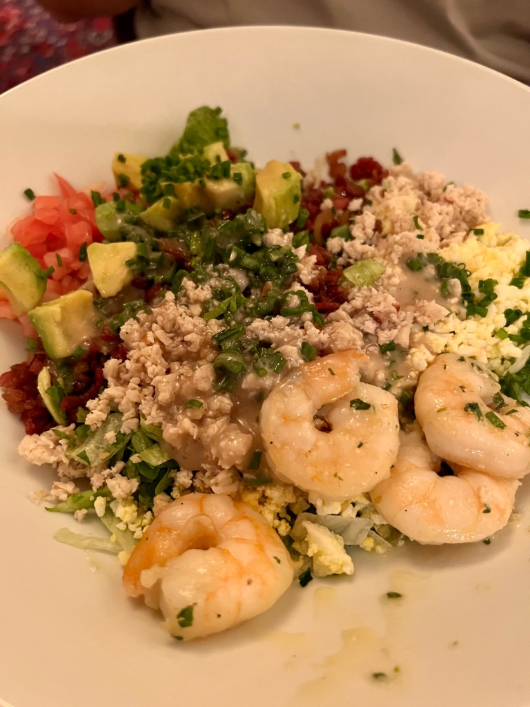 For my entree, I ordered the Braised Short Rib with Parsnip Purée, Spring Vegetable Succotash and Truffle Aïoli. It was delicious! The short ribs were so tender, and all the flavors went so well together. I would never order succotash because it just doesn’t sound appealing, but I ate every bite. John ordered the infamous Cobb Salad and added shrimp. He was disappointed that no one offered to toss it for him (even though he saw many other people getting that done) and felt just ‘meh’ about it. I’m not one to order a salad, so I thought it was weird to order 🙂