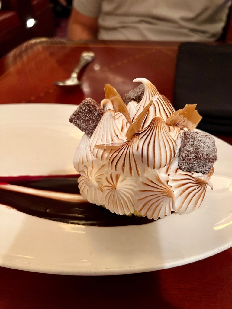 For dessert, I really wanted to try the 50th Celebration Baked Alaska. For some reason I thought it would be on fire (am I thinking of a different dessert?). I was really disappointed in this. It was rock hard, and I had to stab it to get a piece, which meant I was also trying not to send the whole thing flying across the table. Not great and do not recommend.