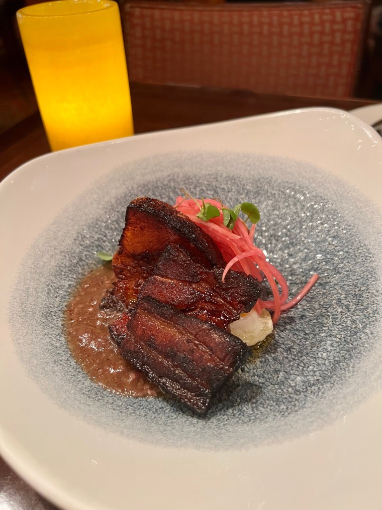 To start our meal, we ordered the Honey-Chili Glazed Pork Belly (Chorizo and Cheese Biscuit, Soft-poached Egg, Tasso Gravy). If there is pork belly on the menu, I will order it. The bread service is the most popular appetizer, but we were really happy with our choice.