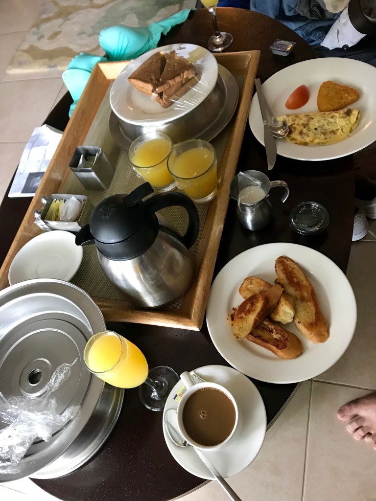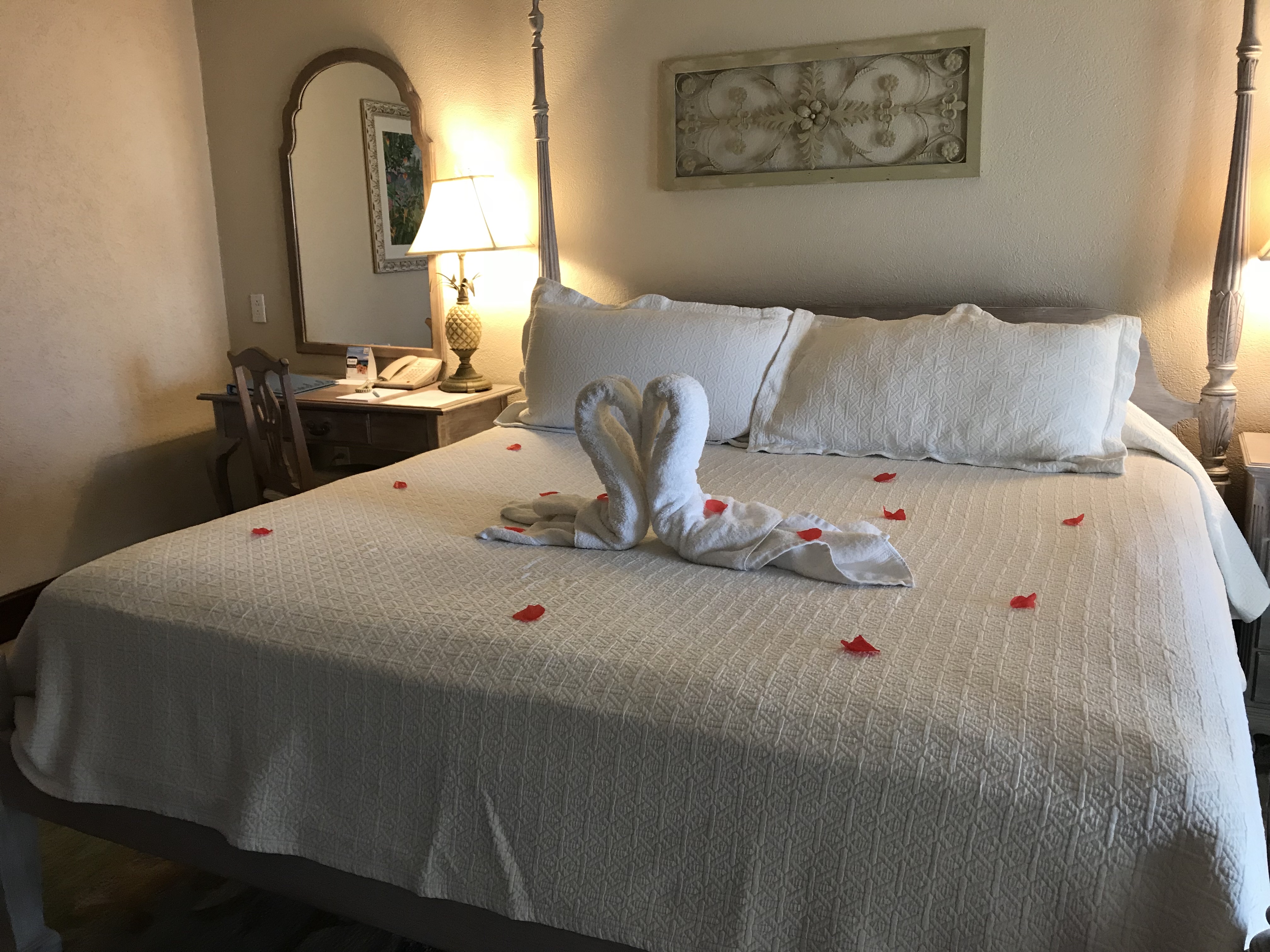 Since we were on our honeymoon, they had rose petals on the bed when we arrived, and we were treated to breakfast “in bed” one morning (which I think is usually an upcharge?).